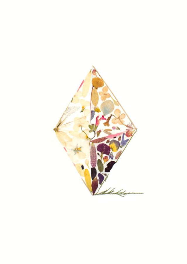 "Un kaléidoscope botanique aux lignes géométriques, où la transparence des pétales rencontre la force d'une structure en losange. Une pièce moderne et équilibrée qui apporte un éclat naturel à un salon chaleureux."